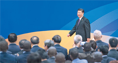 五月十五日,“一带一路”国际合作高峰论坛在北京雁栖湖国际会议中心举行圆桌峰会,国家主席习近平主持会议并致辞。圆桌峰会闭幕后,习近平会见中外记者,介绍“一带一路”国际合作高峰论坛会议情况和主要成果。这是习近平步入记者会现场。 |