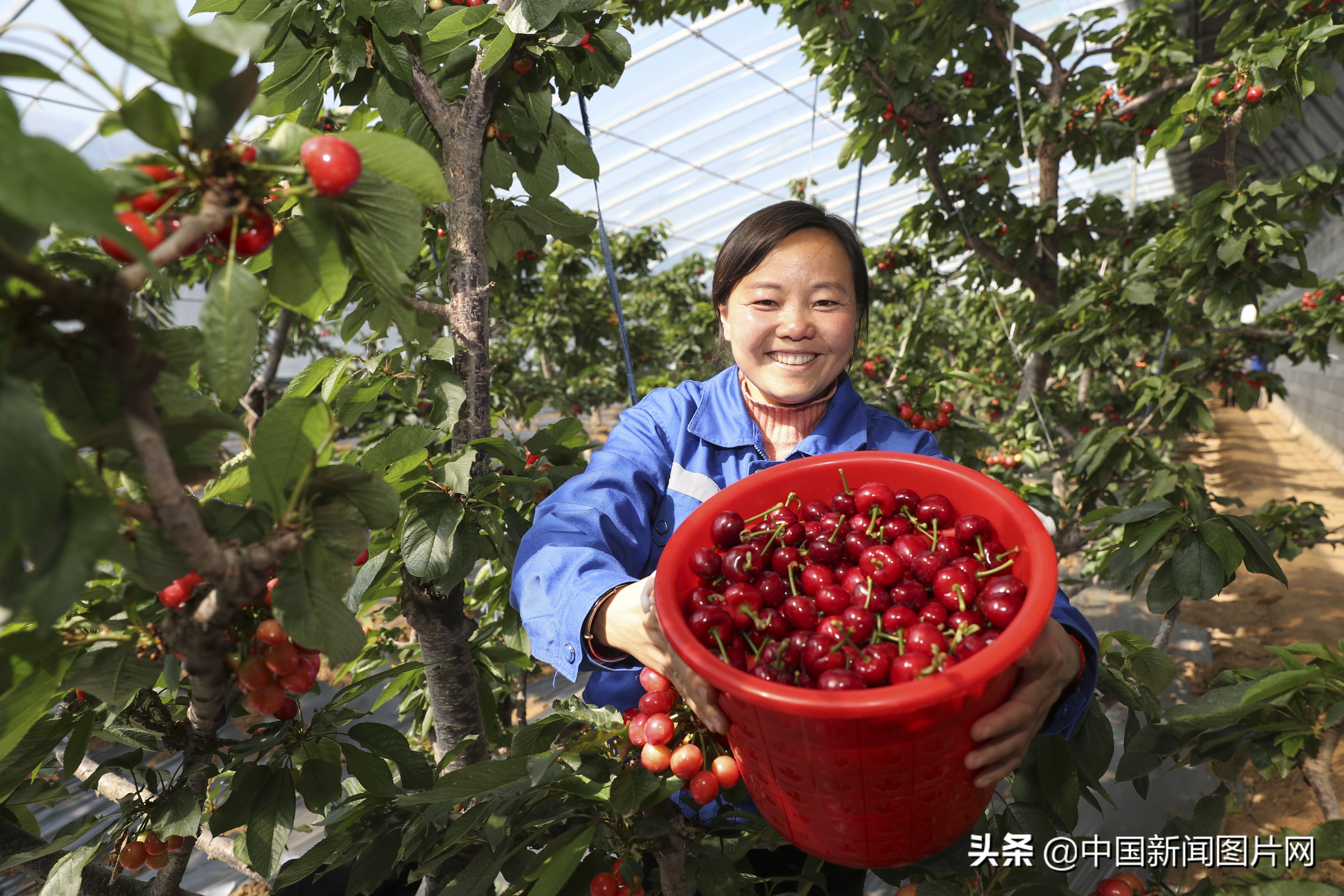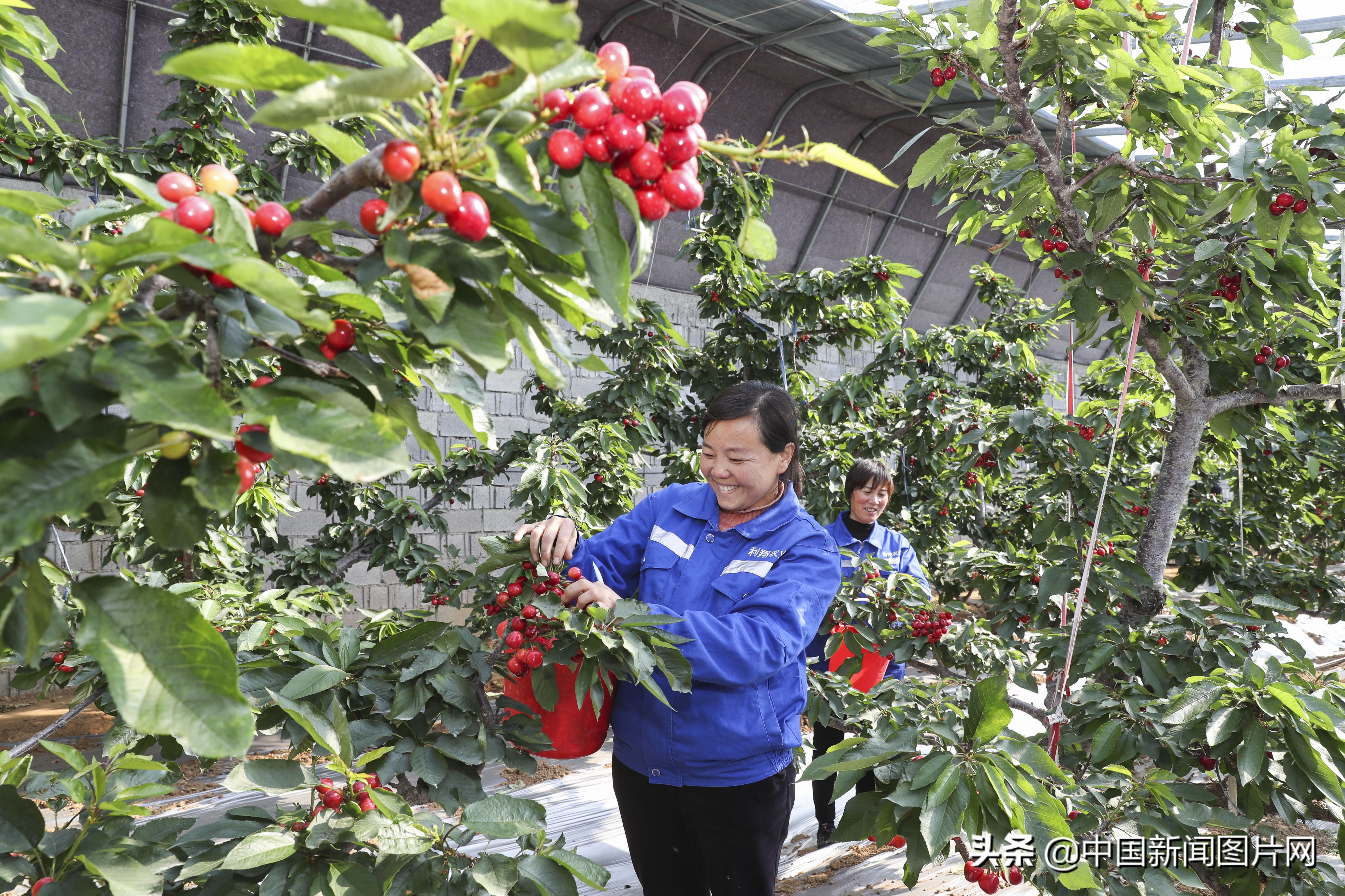 2021年3月23日,江苏省连云港市赣榆区厉庄镇利翔农业大樱桃种植基地工作人员在温室内采摘大樱桃。近年来,连云港市赣榆区引导农民发展大棚樱桃、蓝莓等特色设施果品种植,促进农民增收,助力乡村振兴。目前赣榆区发展设施果品种植达3万多亩,带动当地5000余户农民致富增收。中新社发 司伟 摄