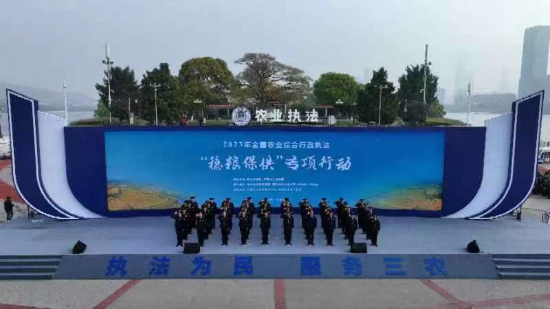 为充分发挥农业综合行政执法对三农中心工作的服务保障作用,全力以赴为国家粮食安全保驾护航,农业农村部今年在全国部署开展农业综合行政执法“稳粮保供”专项行动,向全国农业执法队伍发出确保国家粮食和重要农产品稳定安全供给的“动员令”。当日除湖南省长沙市外,湖北省枝江市、甘肃省张掖市也围绕专项行动重点内容开展了系列特色活动。